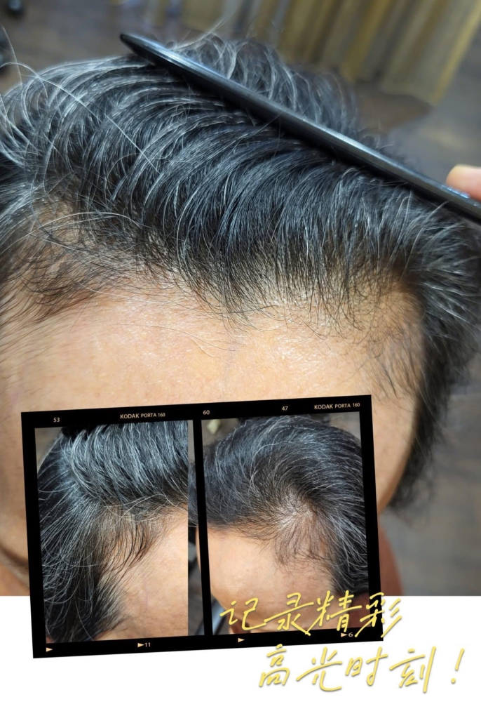 而且原本已禿的兩額髮際線長很多小黑細髮⋯